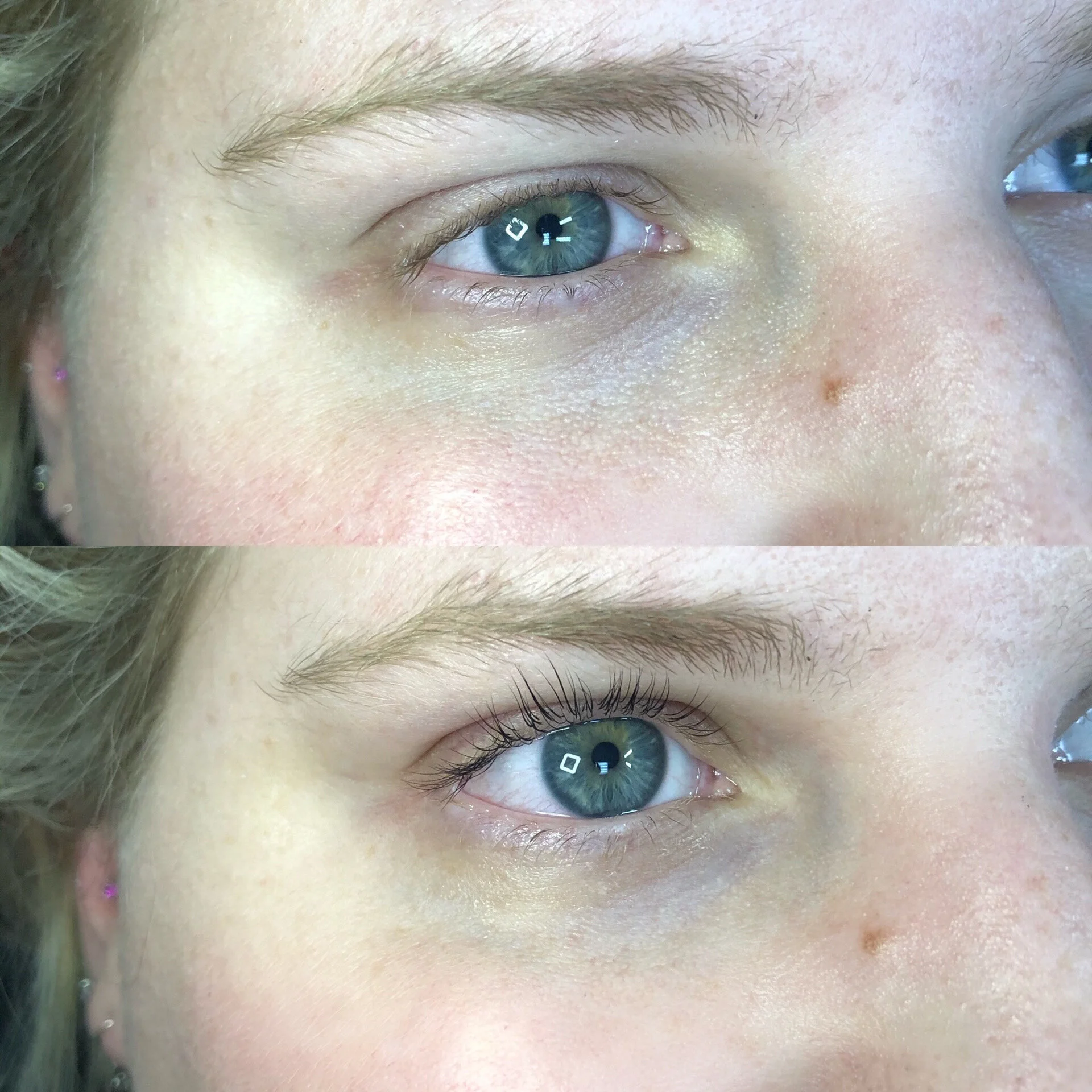 Lash lift: Maybe lash extensions don’t sound like they would be a good fit for you. Lash lifts are an alternative option for someone wanting less morning maintenance, but maybe not the commitment of lash fills. A lash lift is essentially a perm for your lashes. It is a chemical process that helps reshape your natural lashes to give them more of a curl. After 24hrs. You can wear mascara and makeup like normal, your lashes will just have more of a curl and uniform shape. Depending on your hair type this service lasts 6-8 weeks. It’s a great 1st step for someone wanting a very natural and easy look.